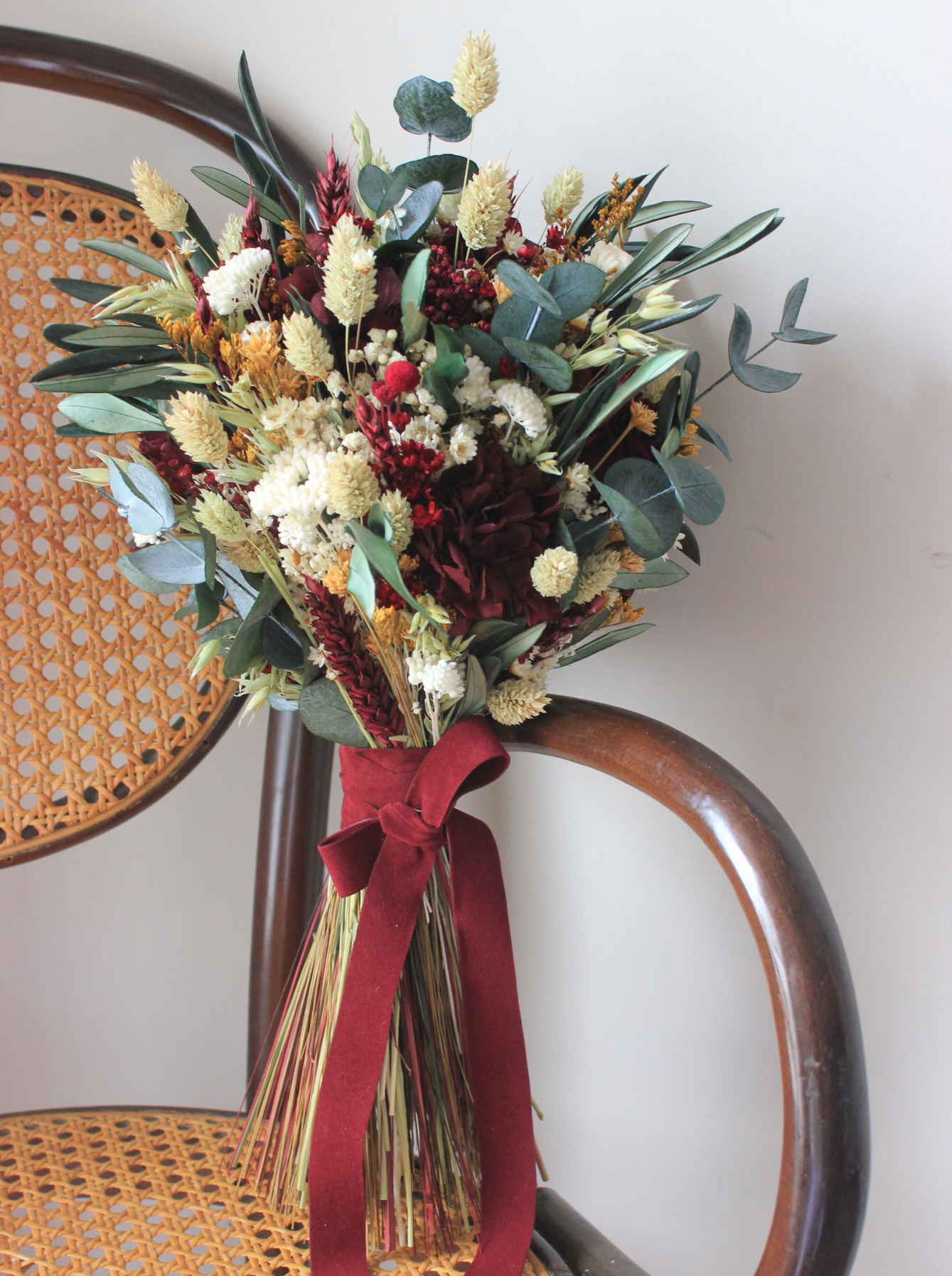 El ramo Paz, es de flores preservadas y de estilo silvestre. Es ideal para novias que son amantes del olivo. Está creado de forma artesanal y con mucho corazón.